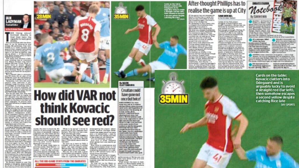 အာဆင်နယ်က မန်စီးတီးကို ၁-၀ ဖြင့် အနိုင်ရတဲ့ အမ်းမရိတ်ကွင်းက ပွဲစဉ်မှာ ကွင်းလယ်ဒိုင် အိုလီဗာရဲ့ ဆုံးဖြတ်ချက်ကို ပရီးမီးယားလိဂ် ဒိုင်ဟောင်း မက် ကလက်တန်ဘတ်က ဘာလို့ အနီကဒ် မဖြစ်ခဲ့သလဲ ဆိုကာ ခေါင်းကြီးသတင်းဖြင့် ထုတ်ဖော် ဝေဖန်ခဲ့ပါတယ်။