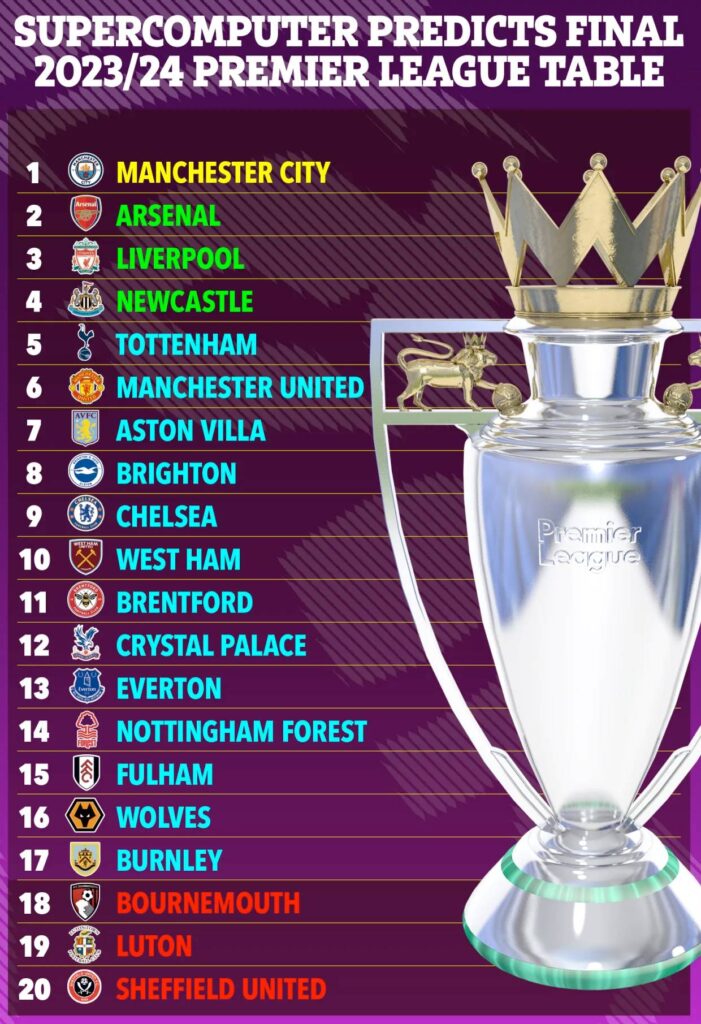စူပါကွန်ပျူတာရဲ့ နောက်ဆုံး တွက်ချက်မှုကတော့ အဲဒီလို မထင်ပါဘူး။ တနင်္ဂနွေနေ့က ပွဲတွေ အပြီး ထုတ်ပြန်လာတဲ့ ၎င်းရဲ့ ပရီးမီးယားလိဂ် ခန့်မှန်းဇယားမှာ မန်စီးတီးကသာ ထိပ်မှာ ရှိနေပါတယ်။