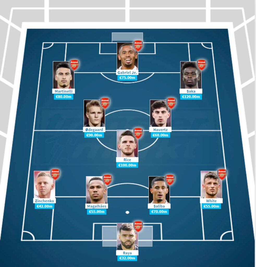 Arsenal’s most valuable XI: Raya, White, Saliba, Gabriel, Zinchenko, Rice, Odegaard, Havertz, Saka, Martinelli, Jesus